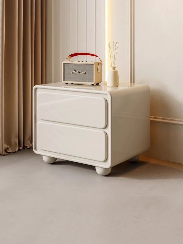 Minimalist Cream Wood Nightstand - Designer Creative Night Cabinet for Home Bedroom Storage Solution