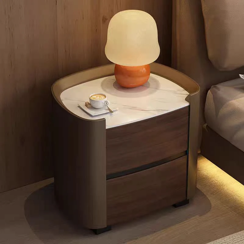 Sleek Modern Bedside Table - Stylish and Minimalist Nightstand for Home Bedrooms, Creative Small Night Cabinet with Luxury Design and Rock Surface