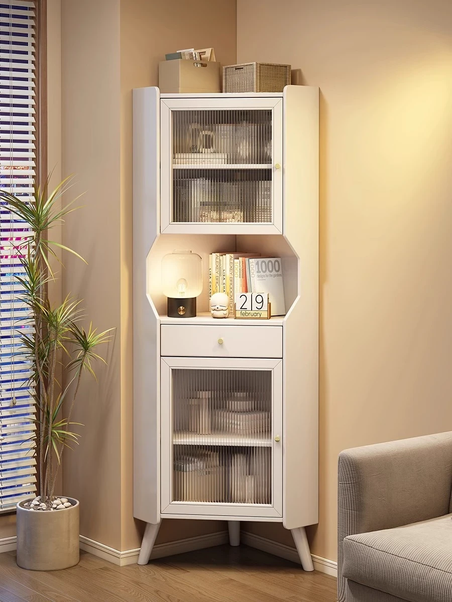 Elegant Solid Wood Triangle Corner Cabinet – Stylish Wall-Mounted Storage for Living Room & Dining Area, Perfectly Fits Small Spaces!