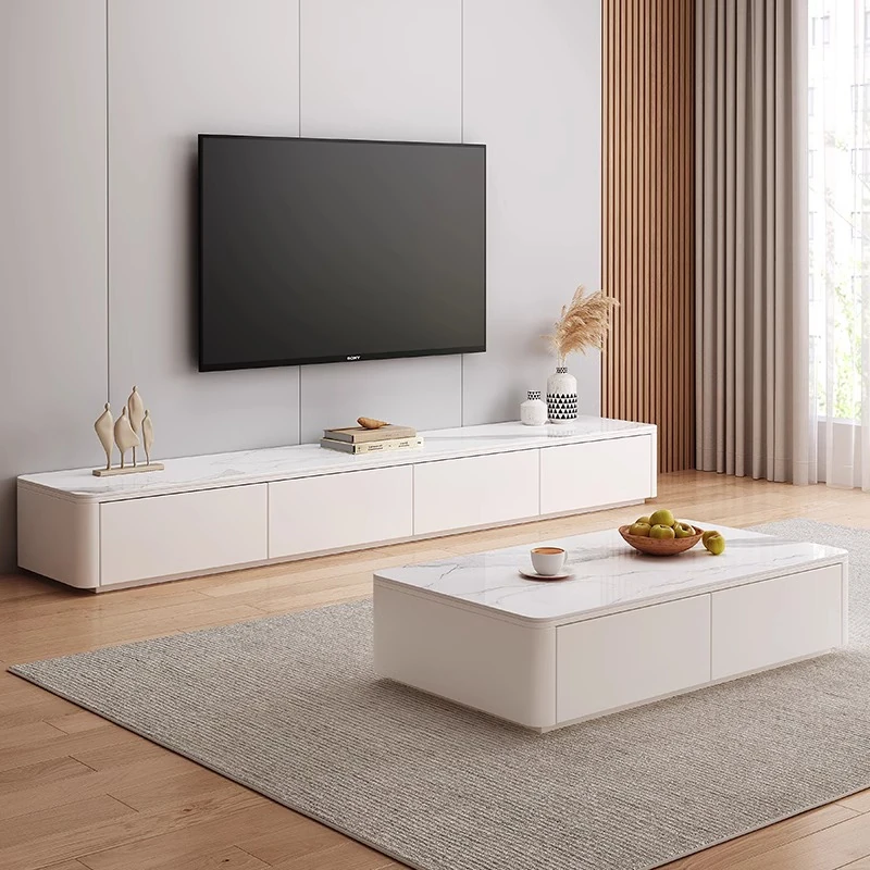 St. Bory Nordic Style TV Stand and Coffee Table Set - Modern Minimalist Light Luxury Living Room Cream Aesthetic Entertainment Unit