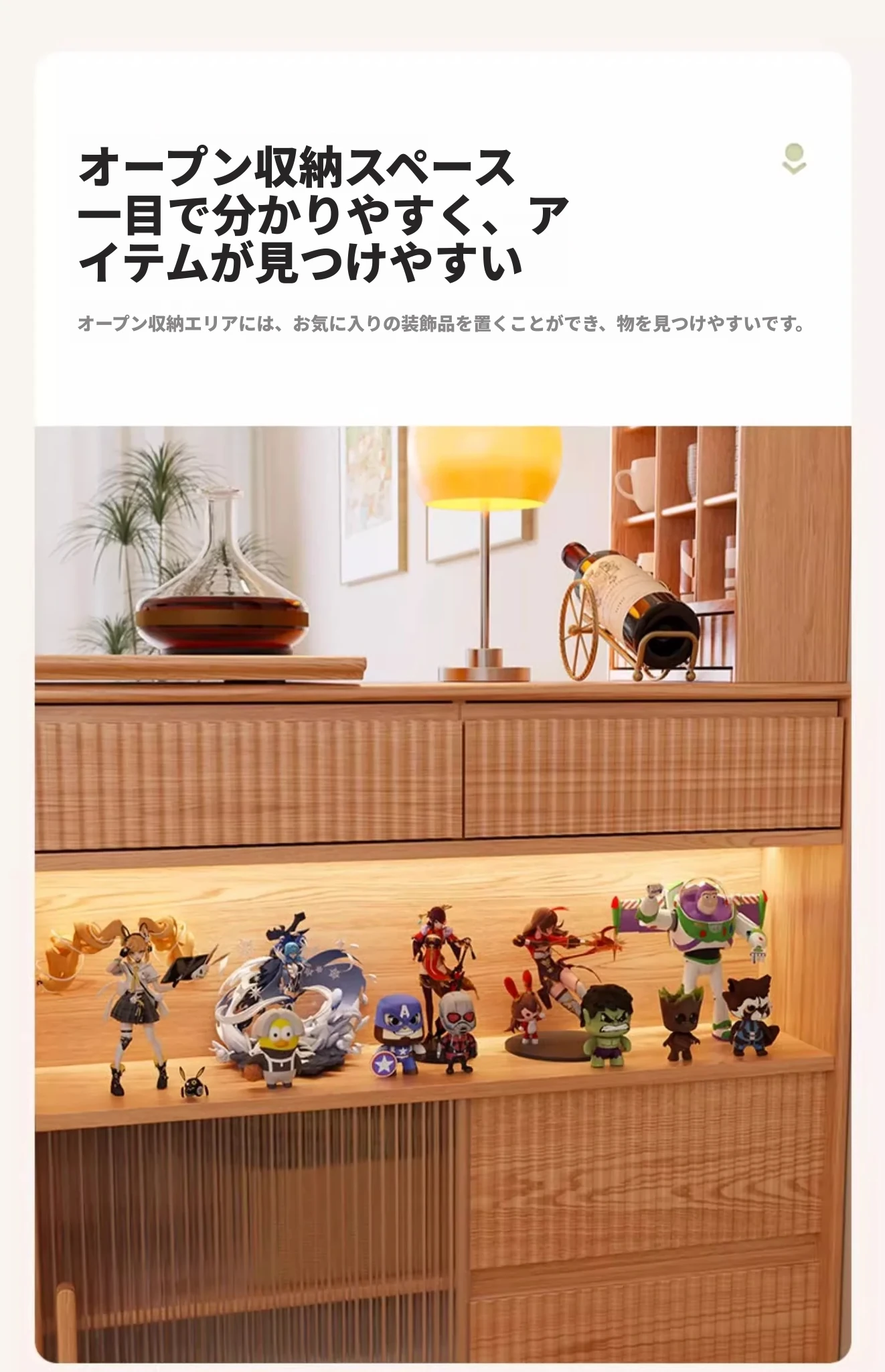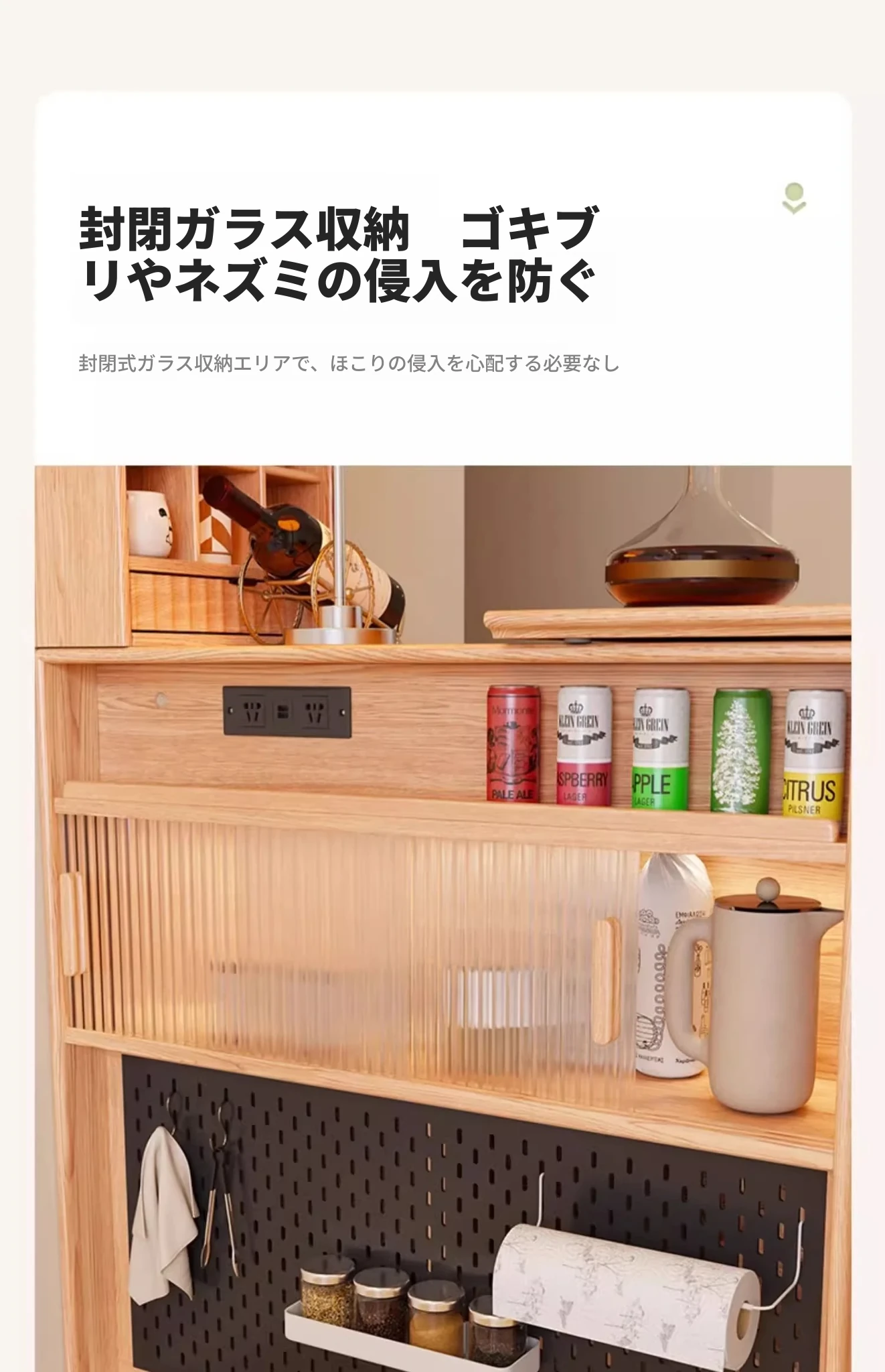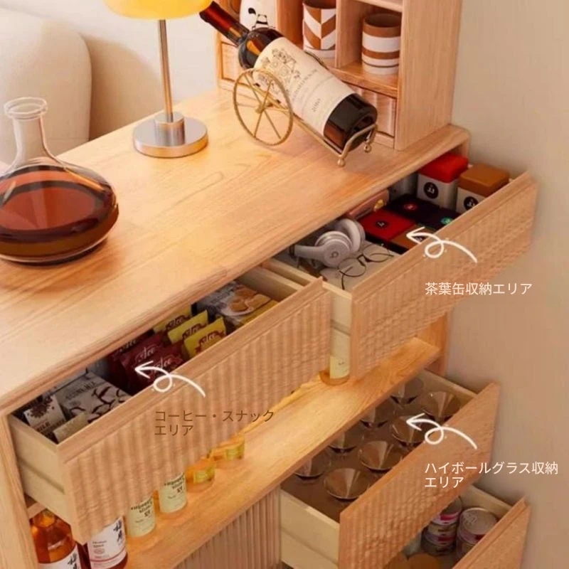 (幅45-ナチュラル) バーカウンターキャビネット- 【無垢材-取り付け込み】
