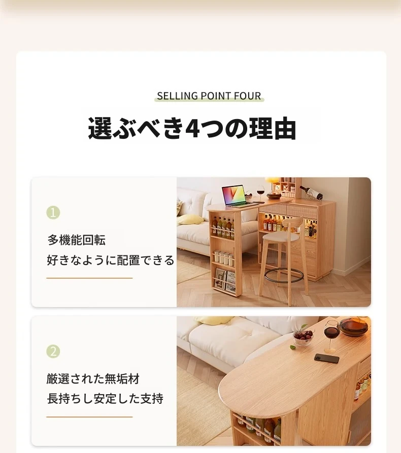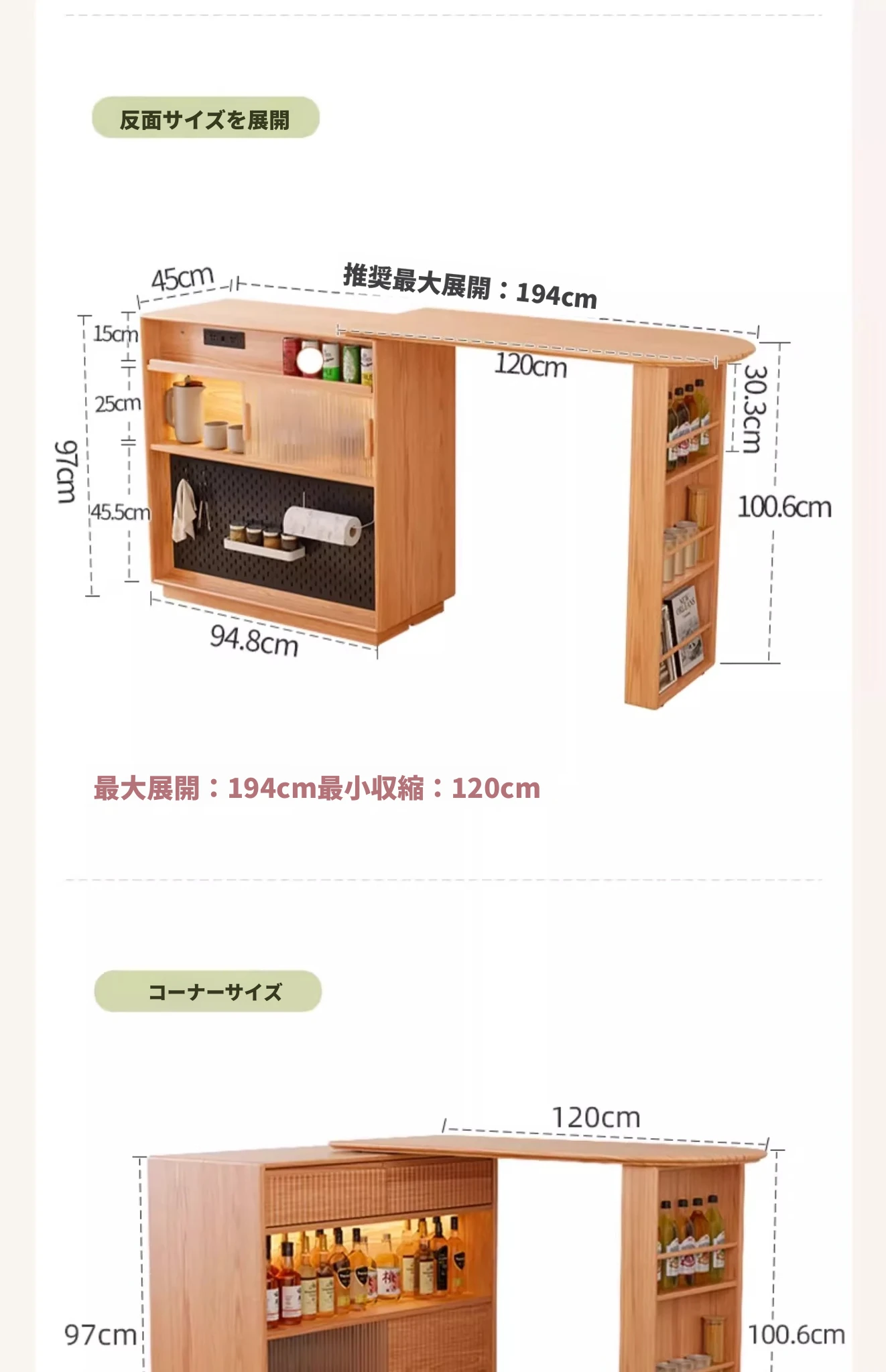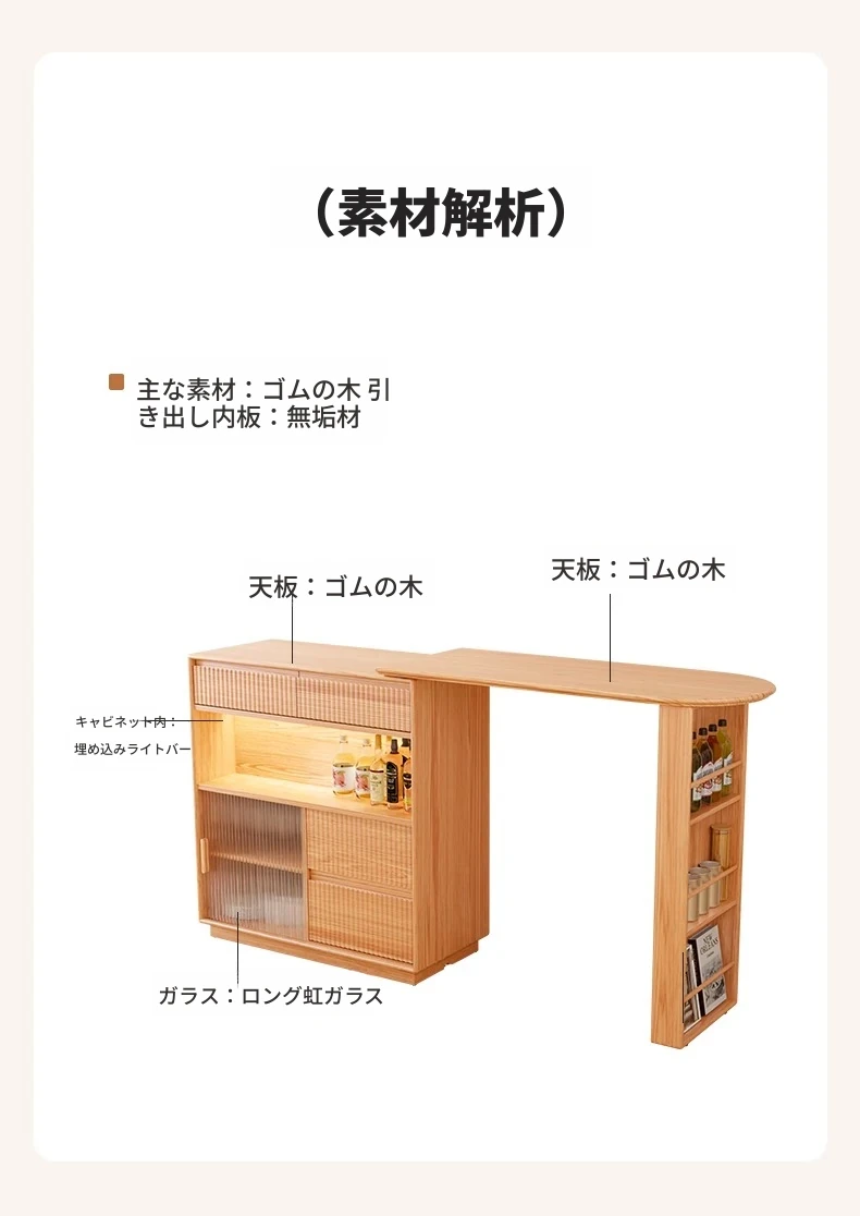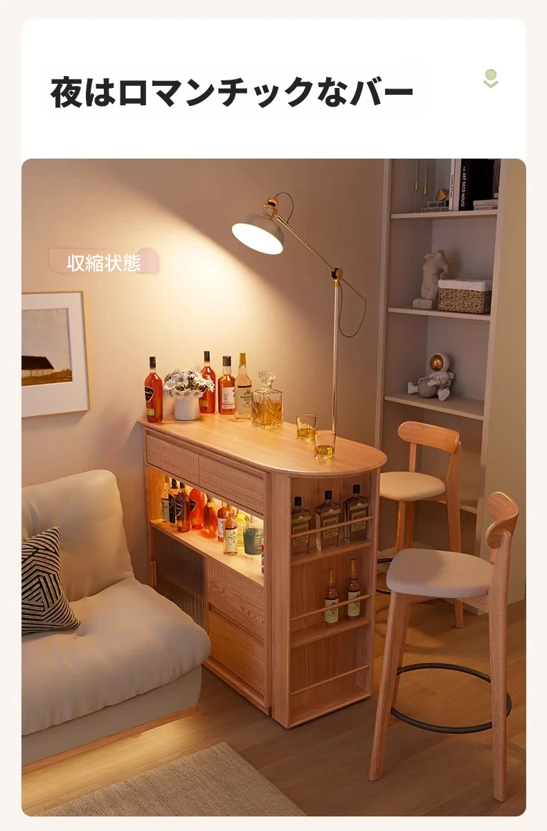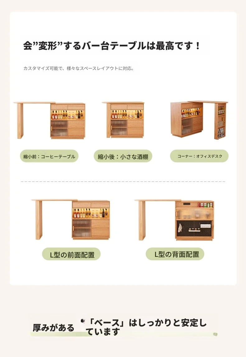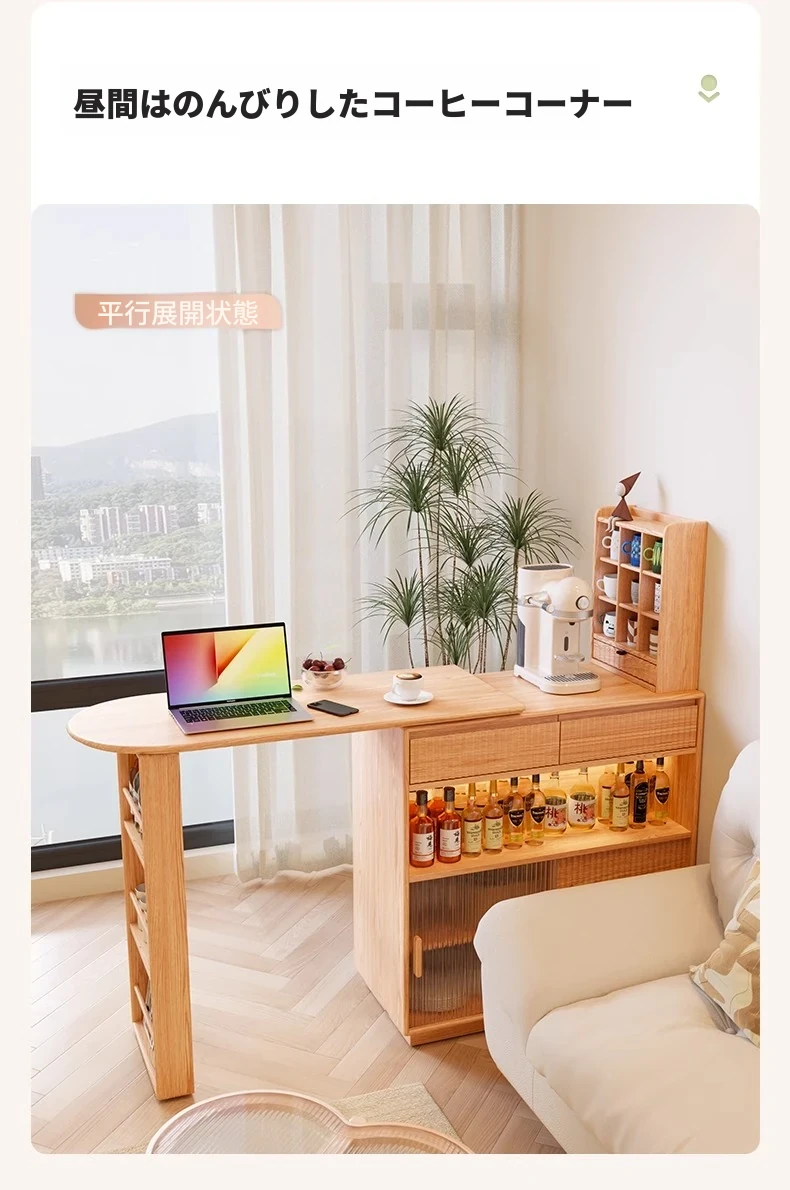 アイセン耐久性抜群!伸縮式一体型ダイニングサイドボード&バーカウンターテーブル - スペースを有効活用し、スタイリッシュな食卓を演出!