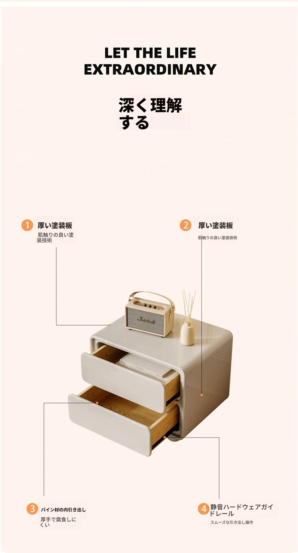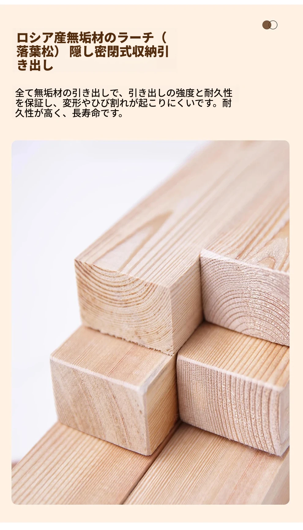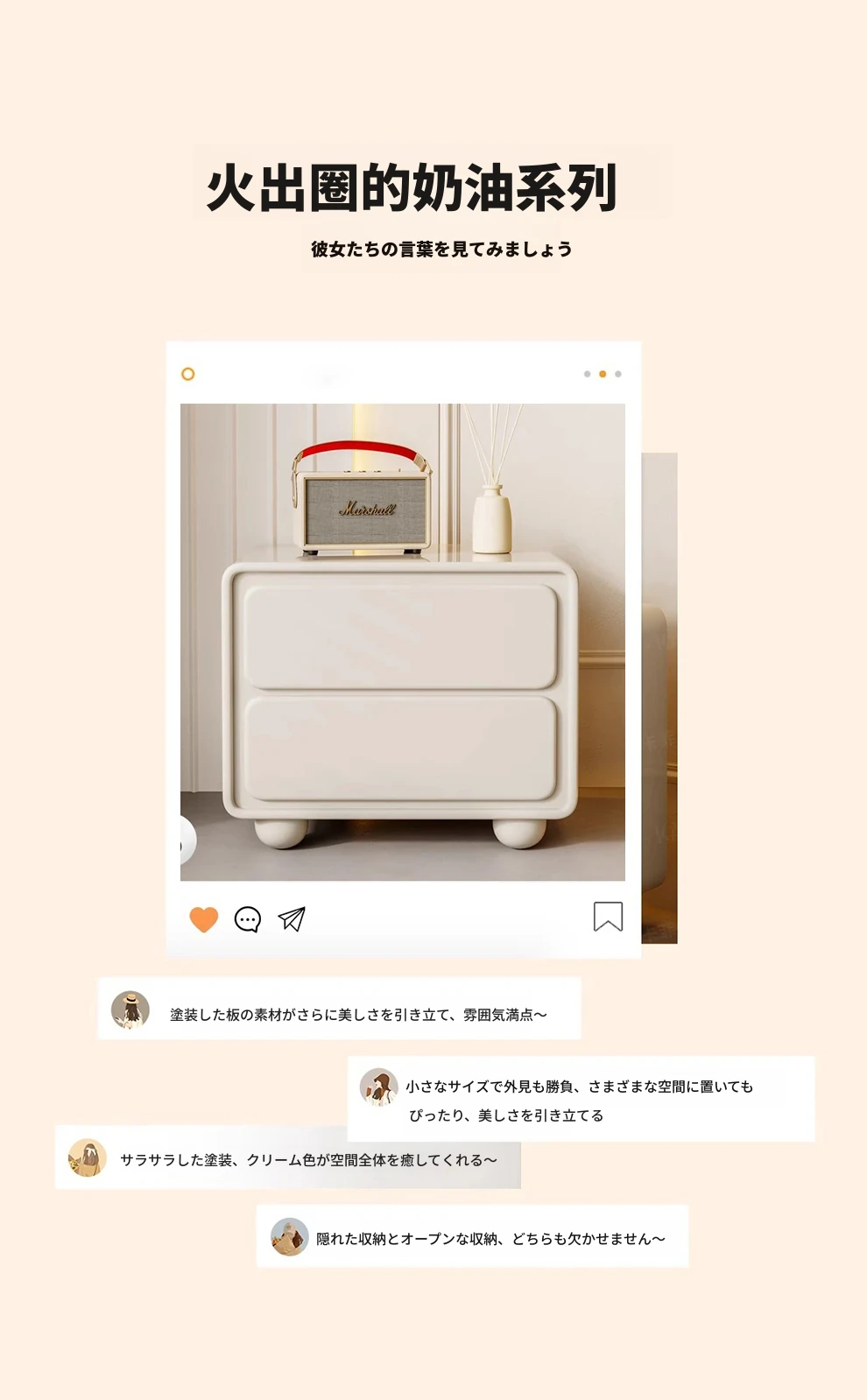 ナイキュウミニマルクリーム風デザインの天然木製ベッドサイドキャビネット - おしゃれで実用的な収納力、あなたの寝室を洗練された空間に演出!