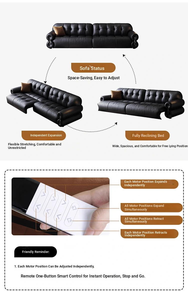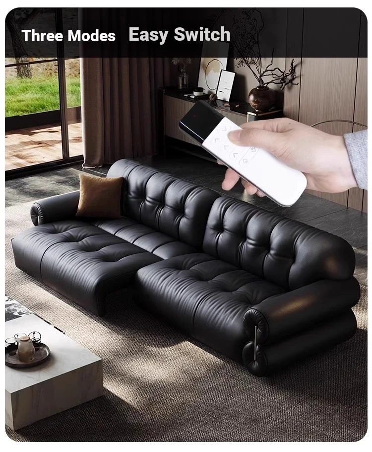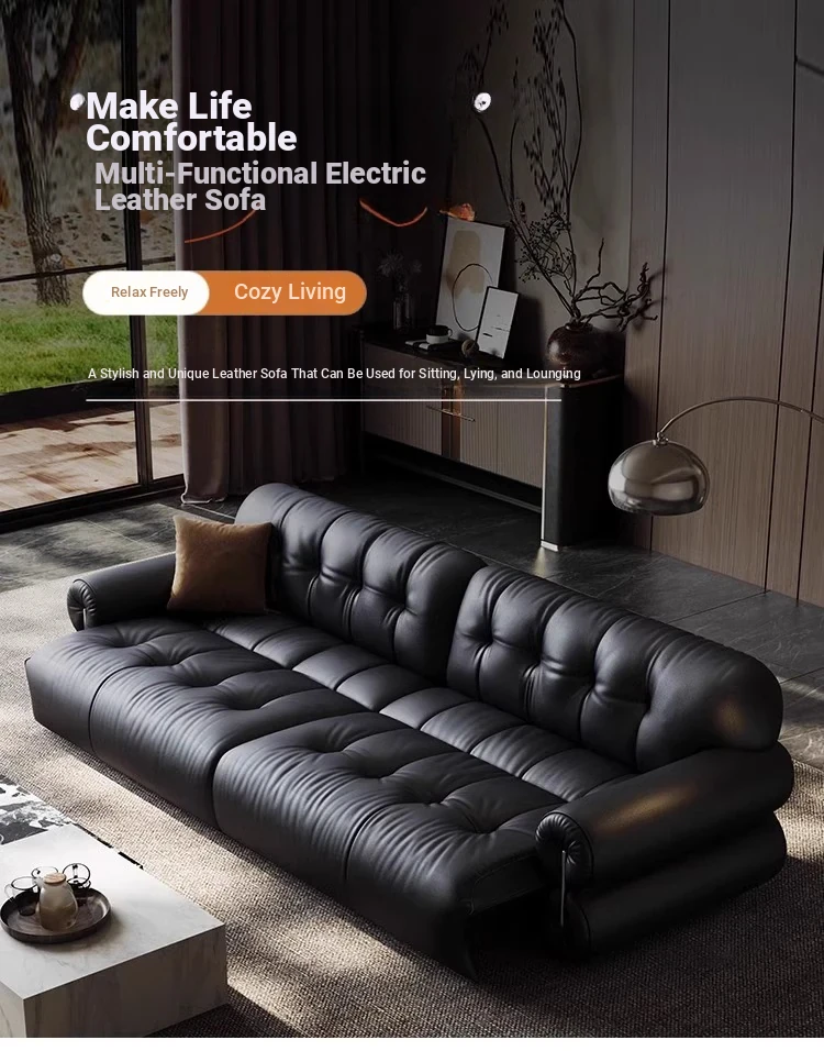 "Modern Adjustable Wall-Free Electric Leather Sofa Bed – Vintage Style, Comfortable Cloud Sofa for Luxury Living Rooms"