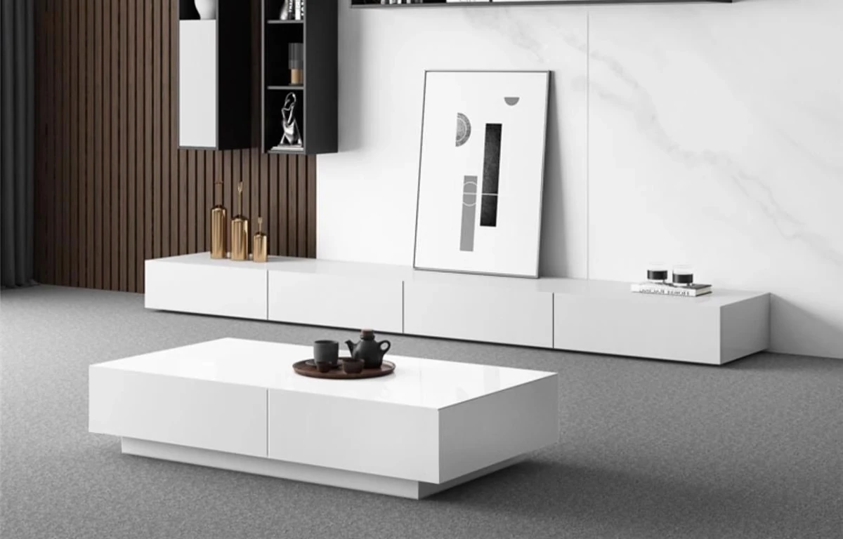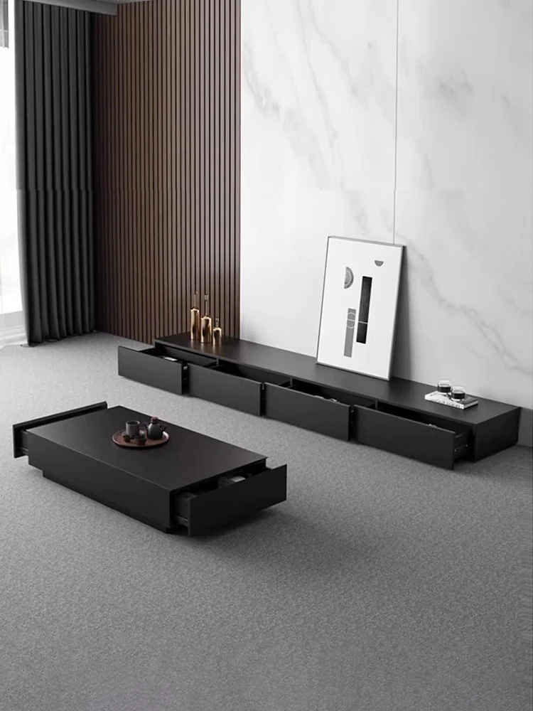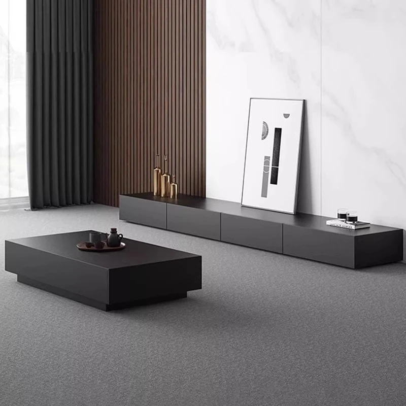 佐識 ブラックテレビキャビネット & テーブル セット|モダンでシンプルなデザインの新作|軽やかなラグジュアリーで小さなリビングに最適|おしゃれな家庭にぴったりのフロアスタイル