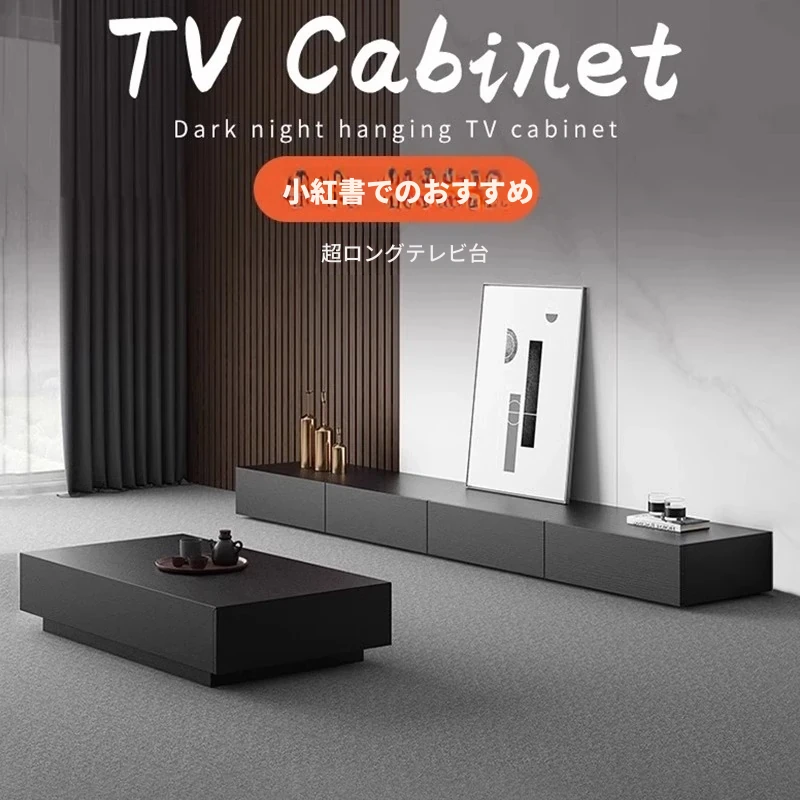 【ダークナイトブラック】3.0メートルフロアテレビキャビネット