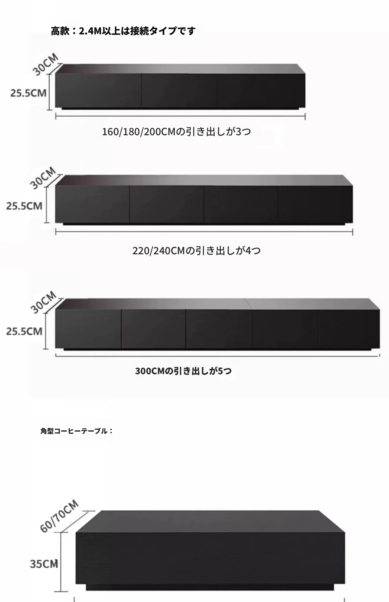 【ダークナイトブラック】2.4メートルフロアテレビキャビネット