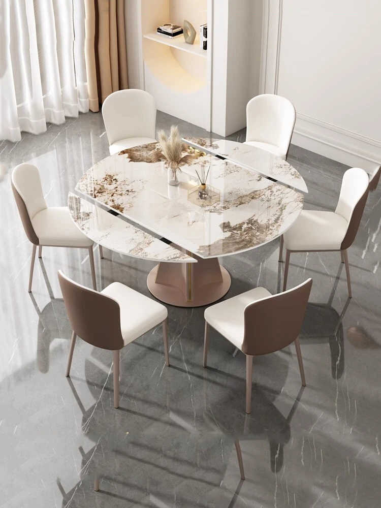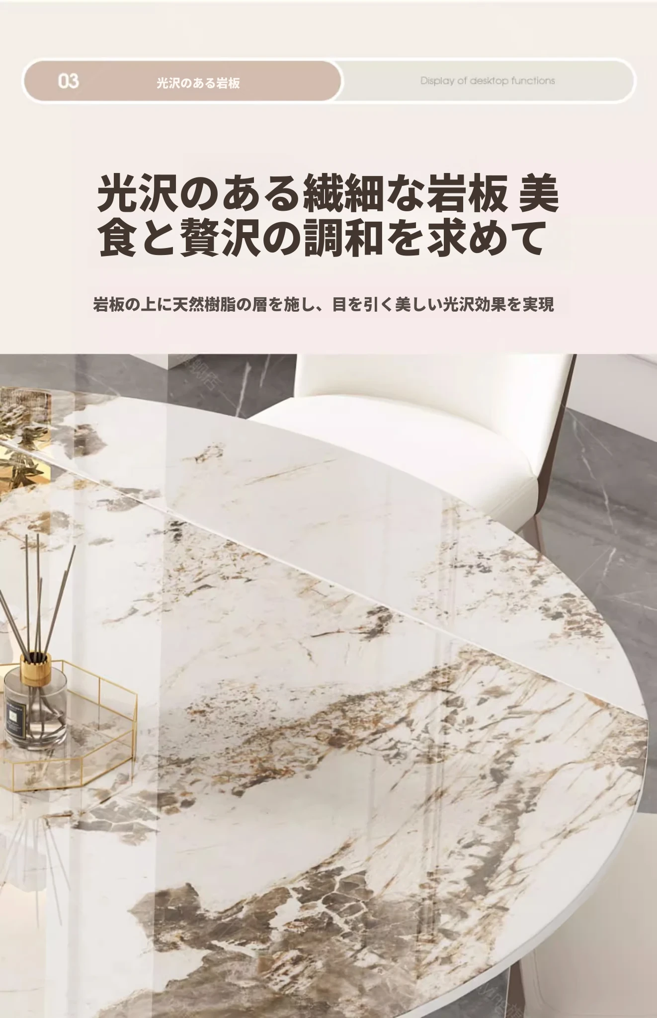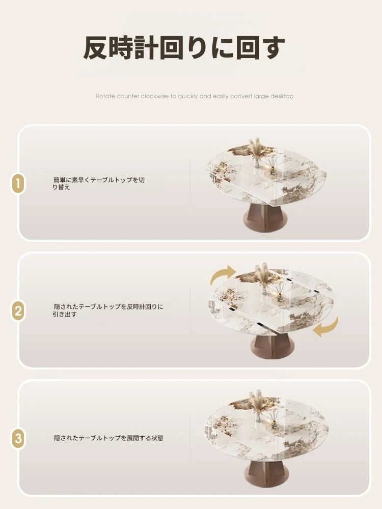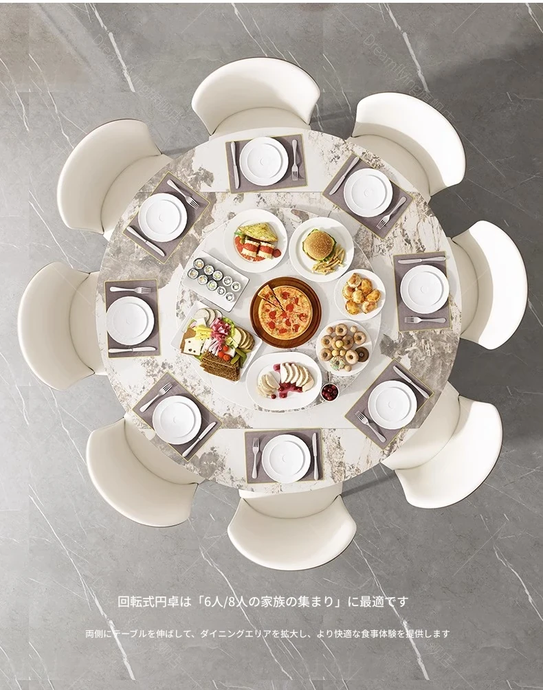 現代的な佐慕岩板ダイニングテーブル - シンプルでラグジュアリーなデザイン、狭いスペースにも最適!回転式・伸縮・折りたたみ可能な多機能円形テーブルで、家族や友人との素敵なひとときを演出します。