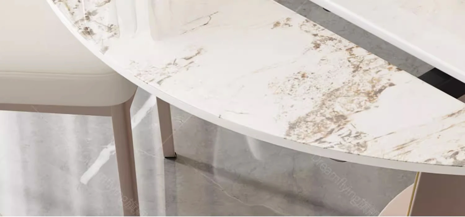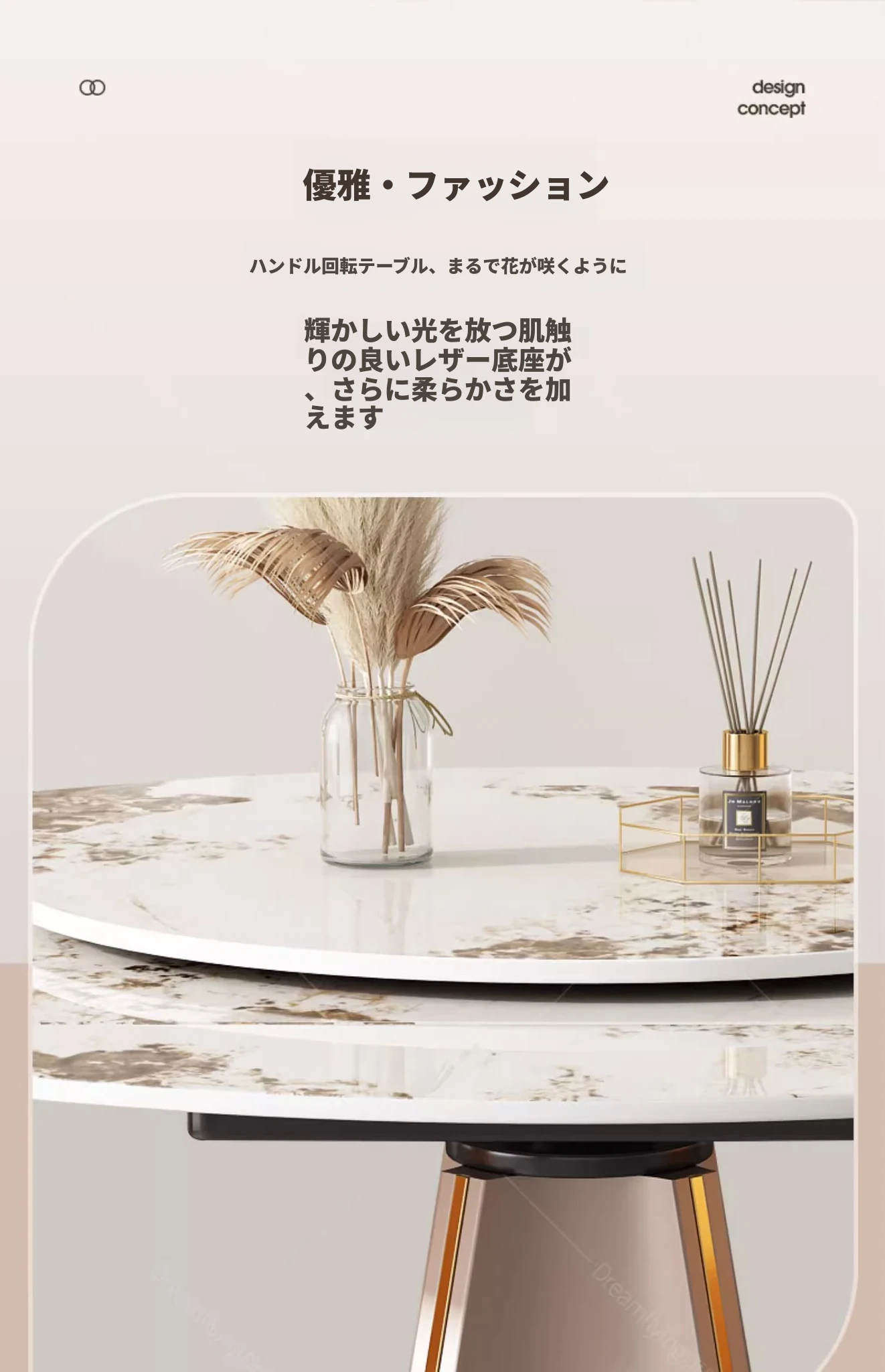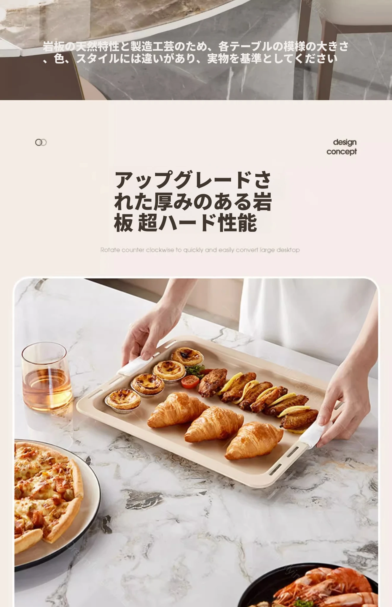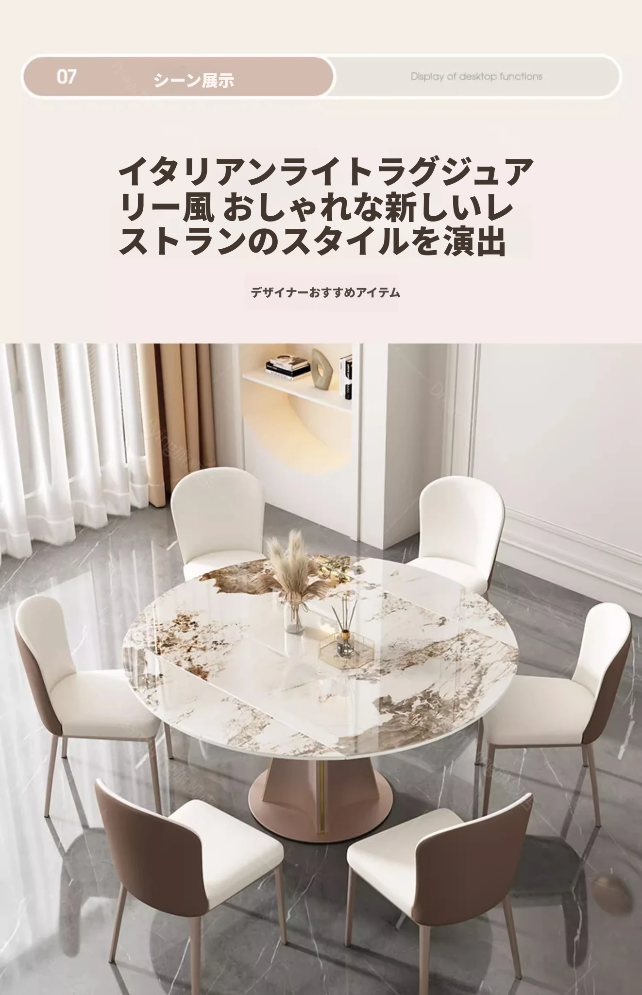 現代的な佐慕岩板ダイニングテーブル - シンプルでラグジュアリーなデザイン、狭いスペースにも最適!回転式・伸縮・折りたたみ可能な多機能円形テーブルで、家族や友人との素敵なひとときを演出します。