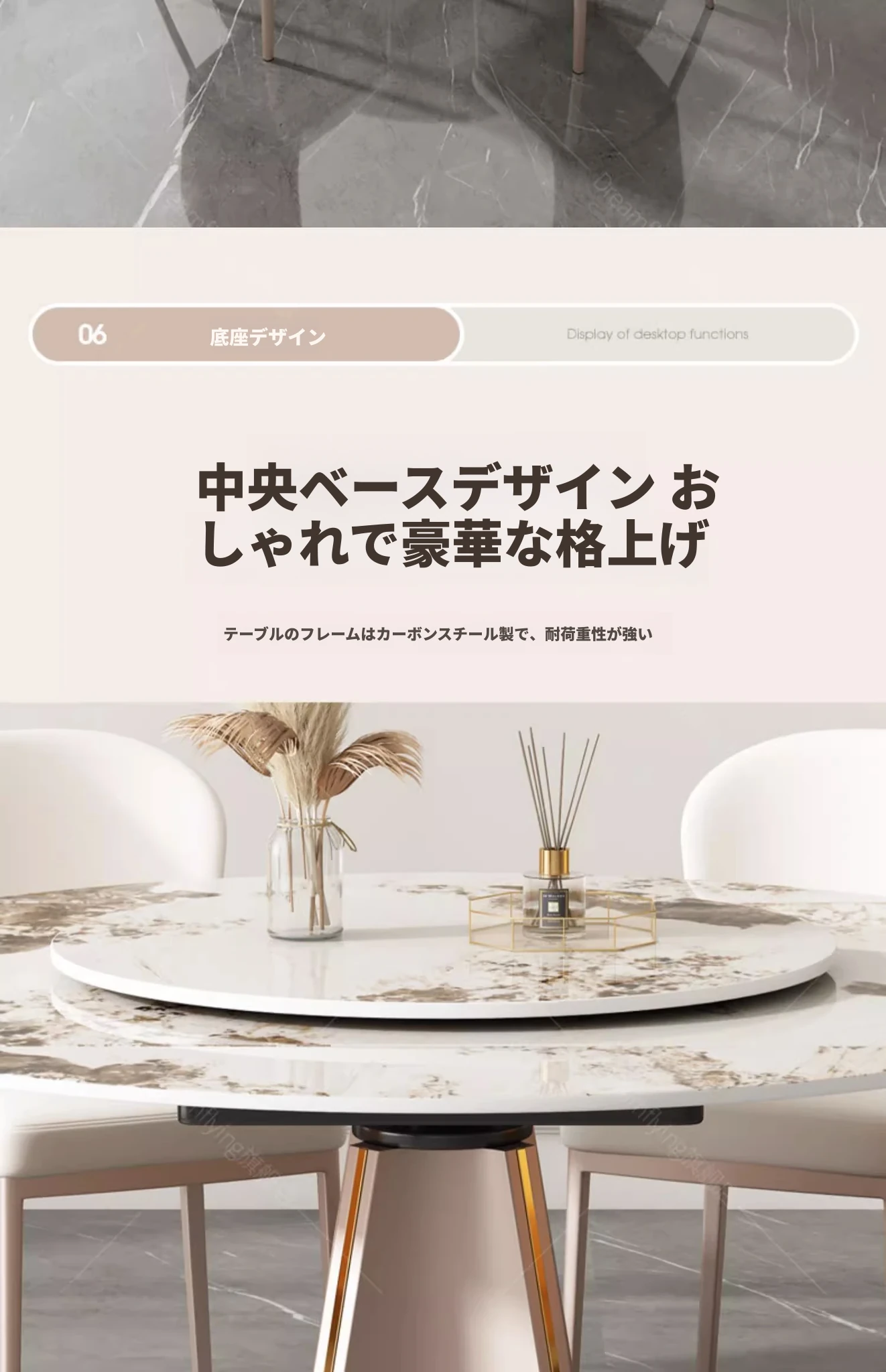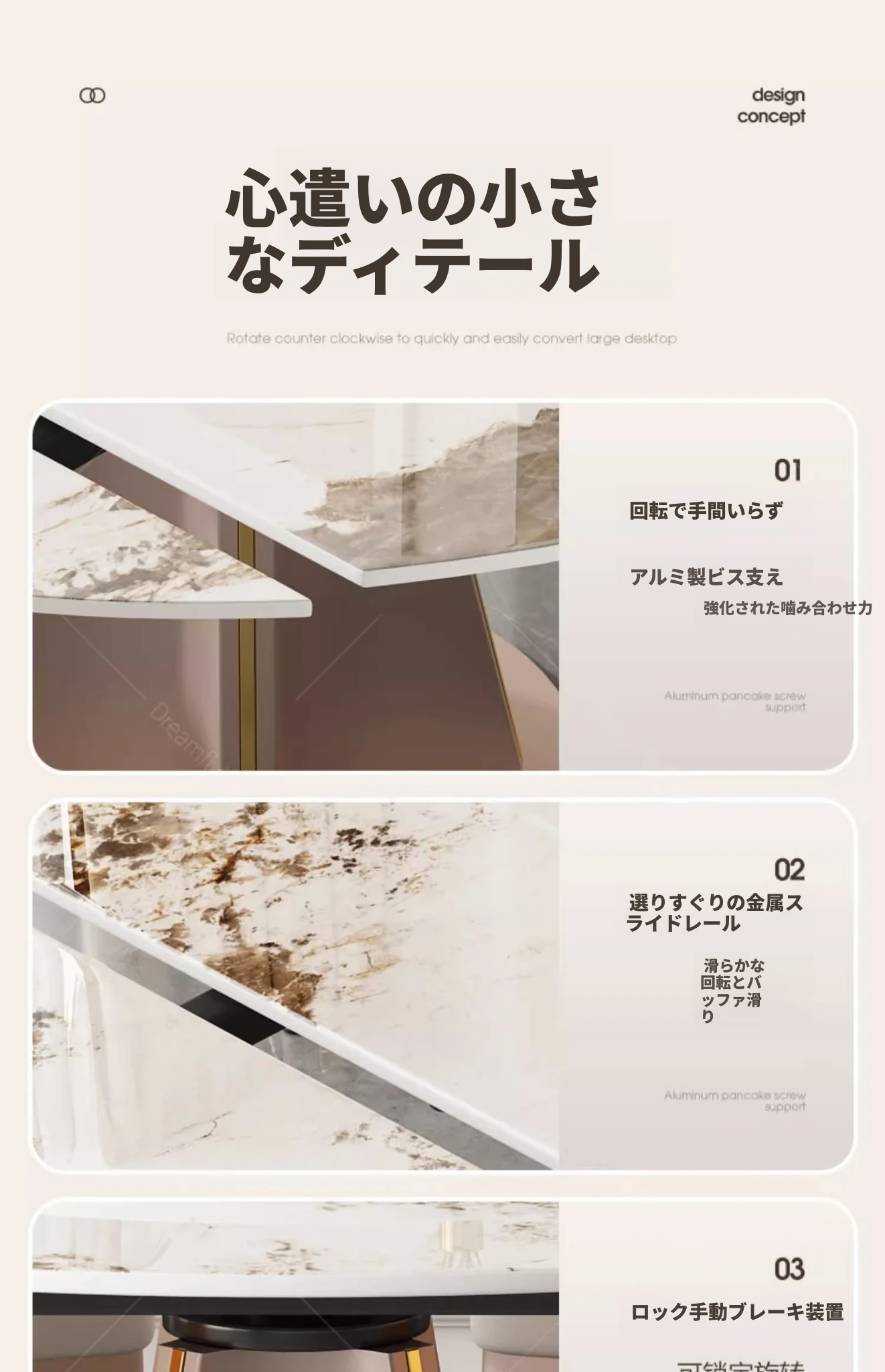 【フラッグシップ版回転タイプ - 80cmの岩板回転テーブル付き】丸型と四角型の兼用ダイニングテーブル 【フラッグシップ版回転タイプ - 80cmの岩板回転テーブル付き】丸型と四角型の兼用ダイニングテーブル