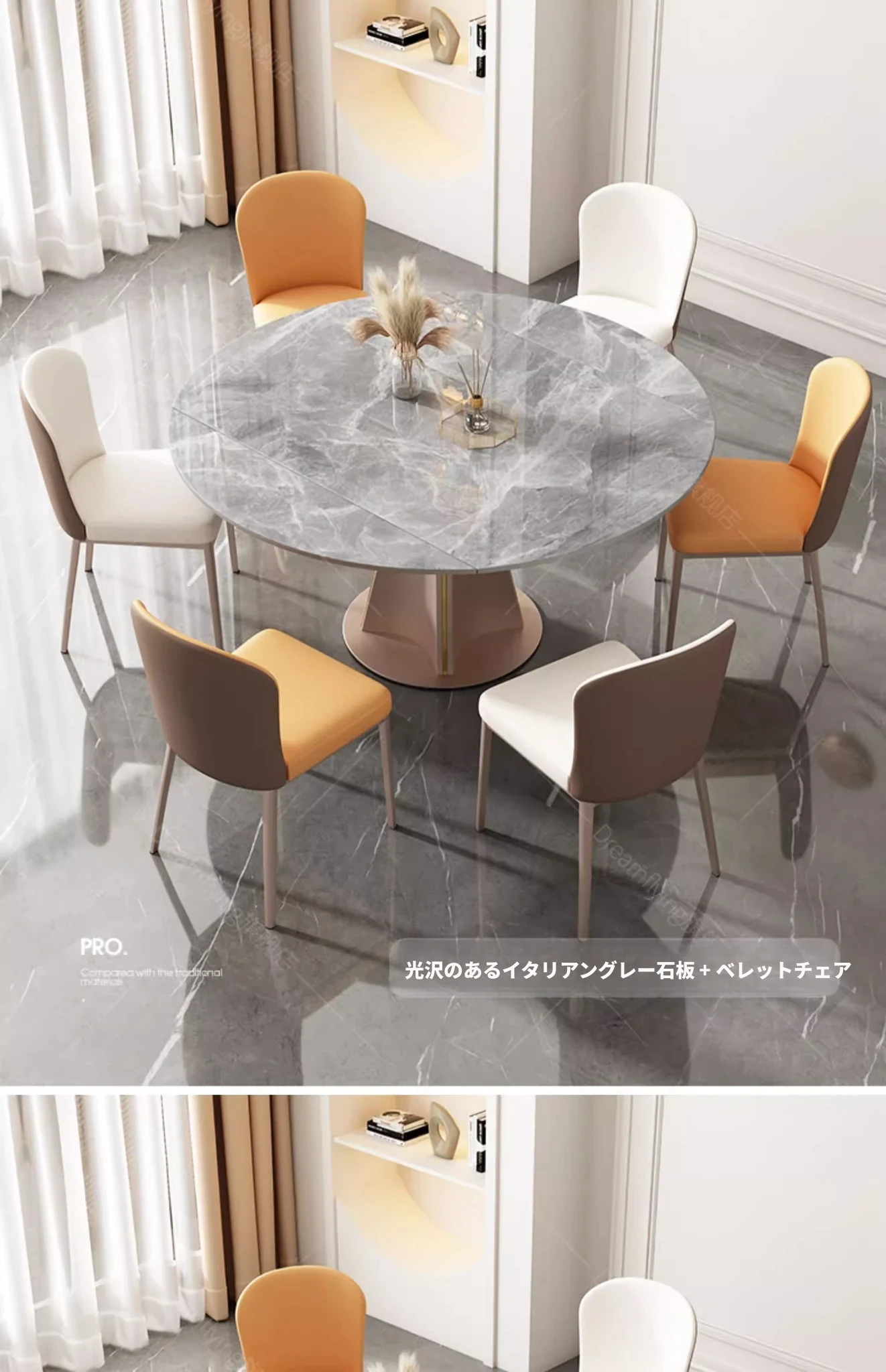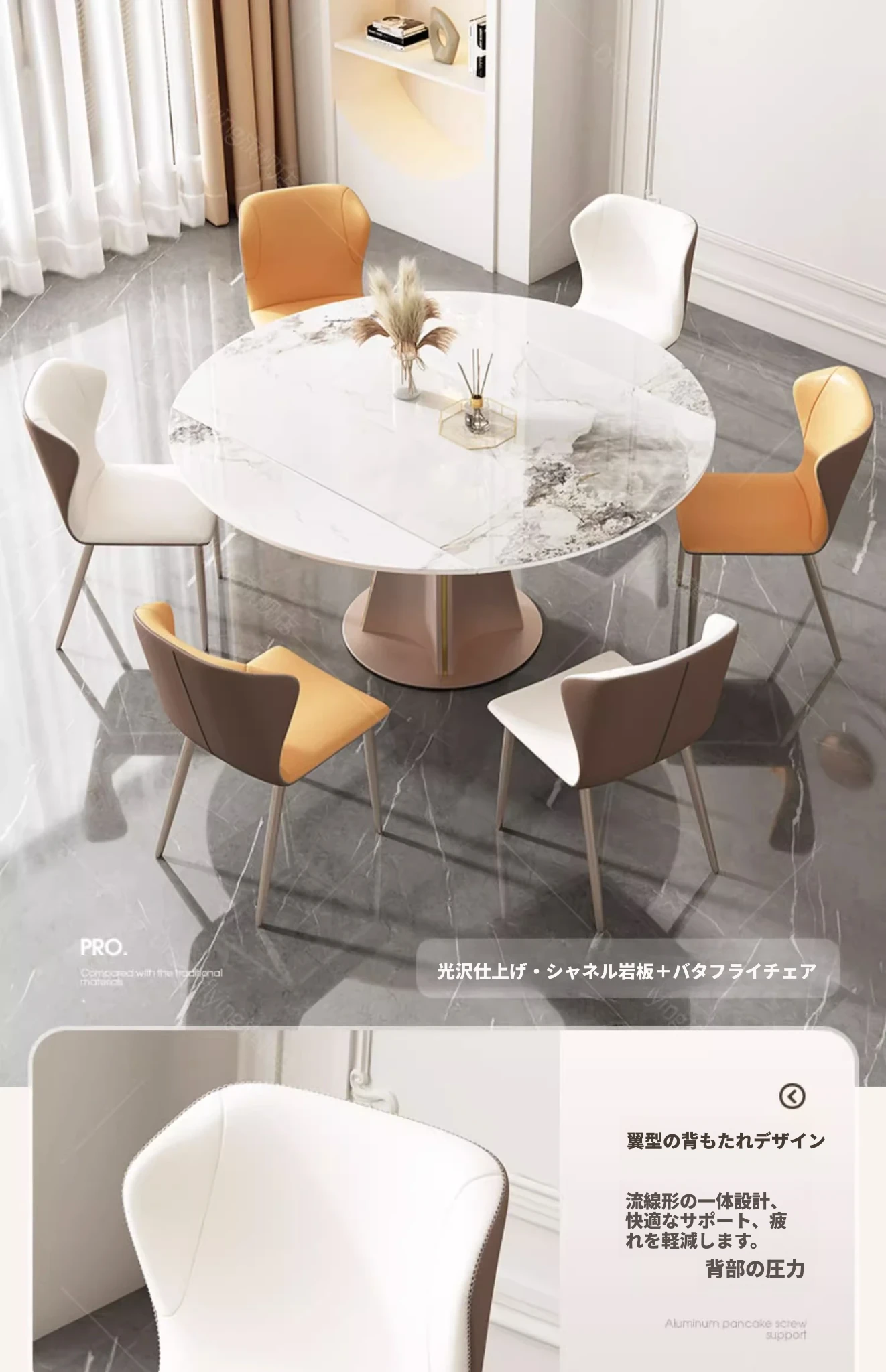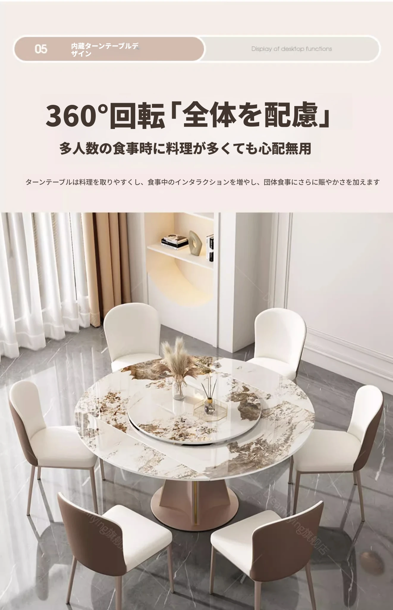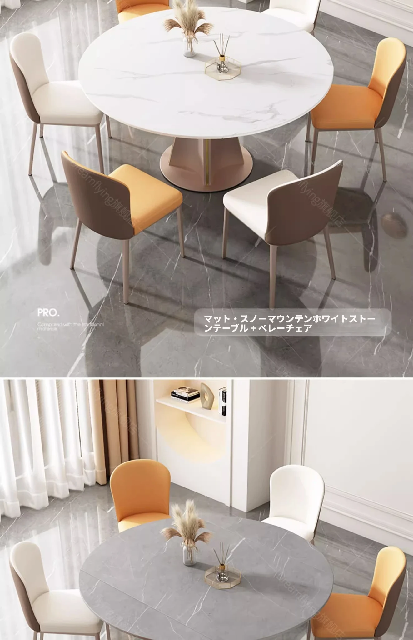 【フラッグシップ版回転タイプ - 80cmの岩板回転テーブル付き】丸型と四角型の兼用ダイニングテーブル+ベール椅子*6【フラッグシップ版回転タイプ - 80cmの岩板回転テーブル付き】丸型と四角型の兼用ダイニングテーブル+ベール椅子*6