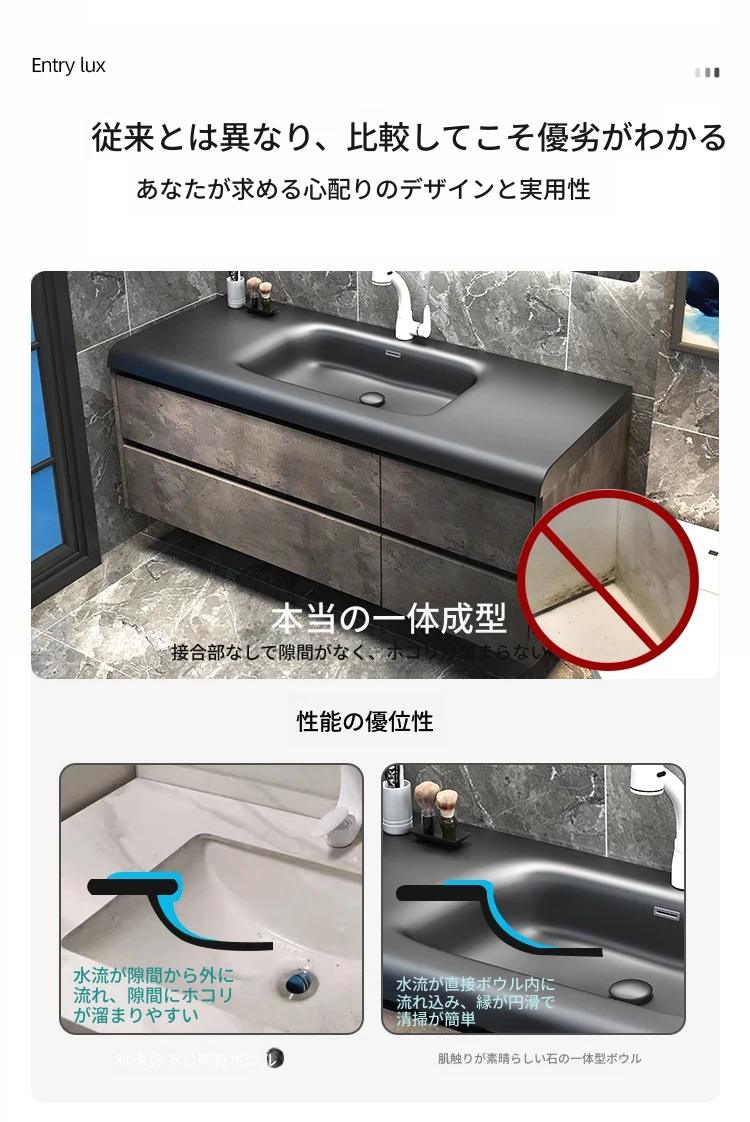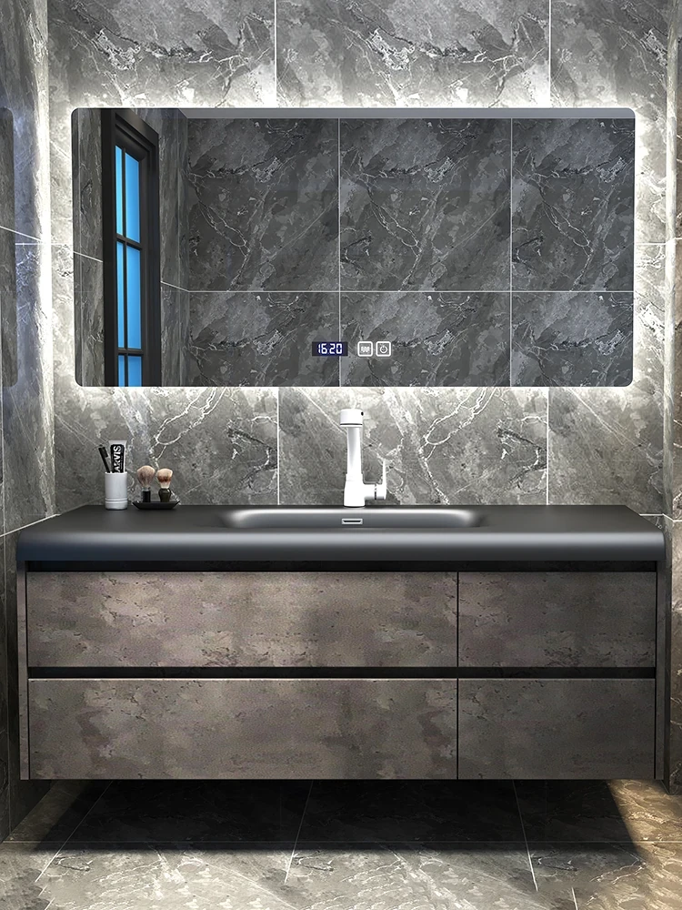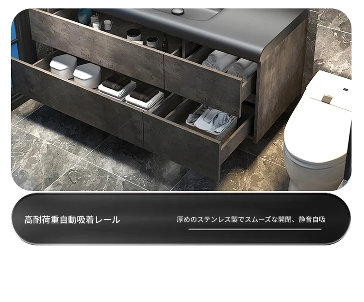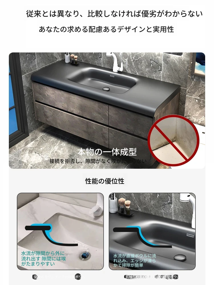 インターコンチネンタルシンプルモダン浴室キャビネットセット|スタイリッシュなブラック洗面ボウル付き|洗練された洗面台でリラックスしたバスタイムを実現!吊り下げ式キャビネット付きでスッキリ収納!