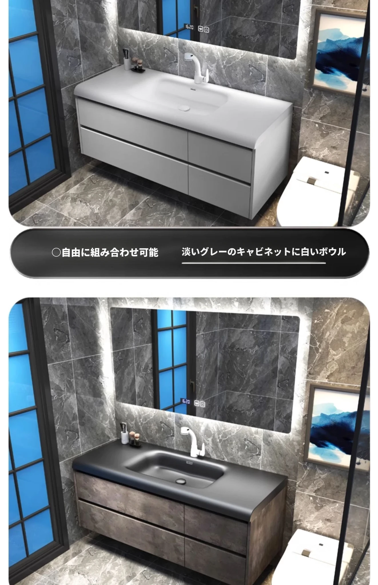 120cm一体盆+[スマートガラス扉鏡キャビネット] 120cm一体盆+[スマートガラス扉鏡キャビネット]