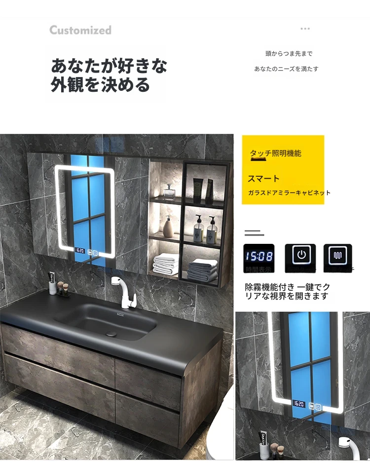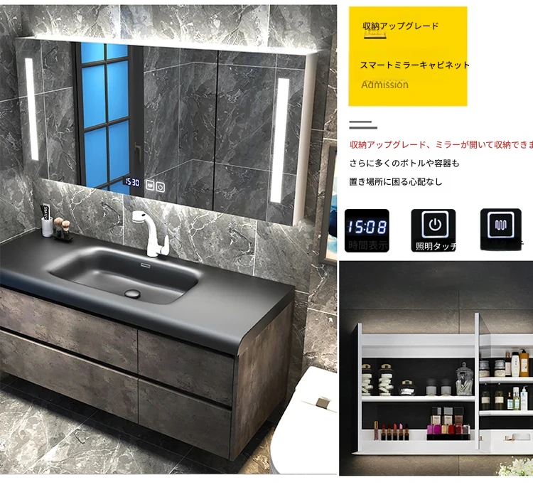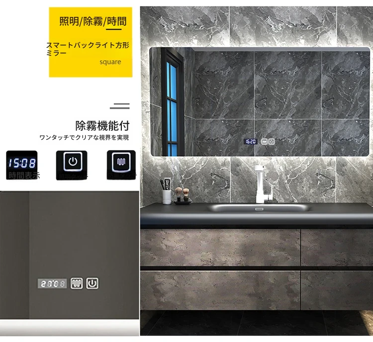 70cm一体盆+[スマートバックライト角鏡] 70cm一体盆+[スマートバックライト角鏡]