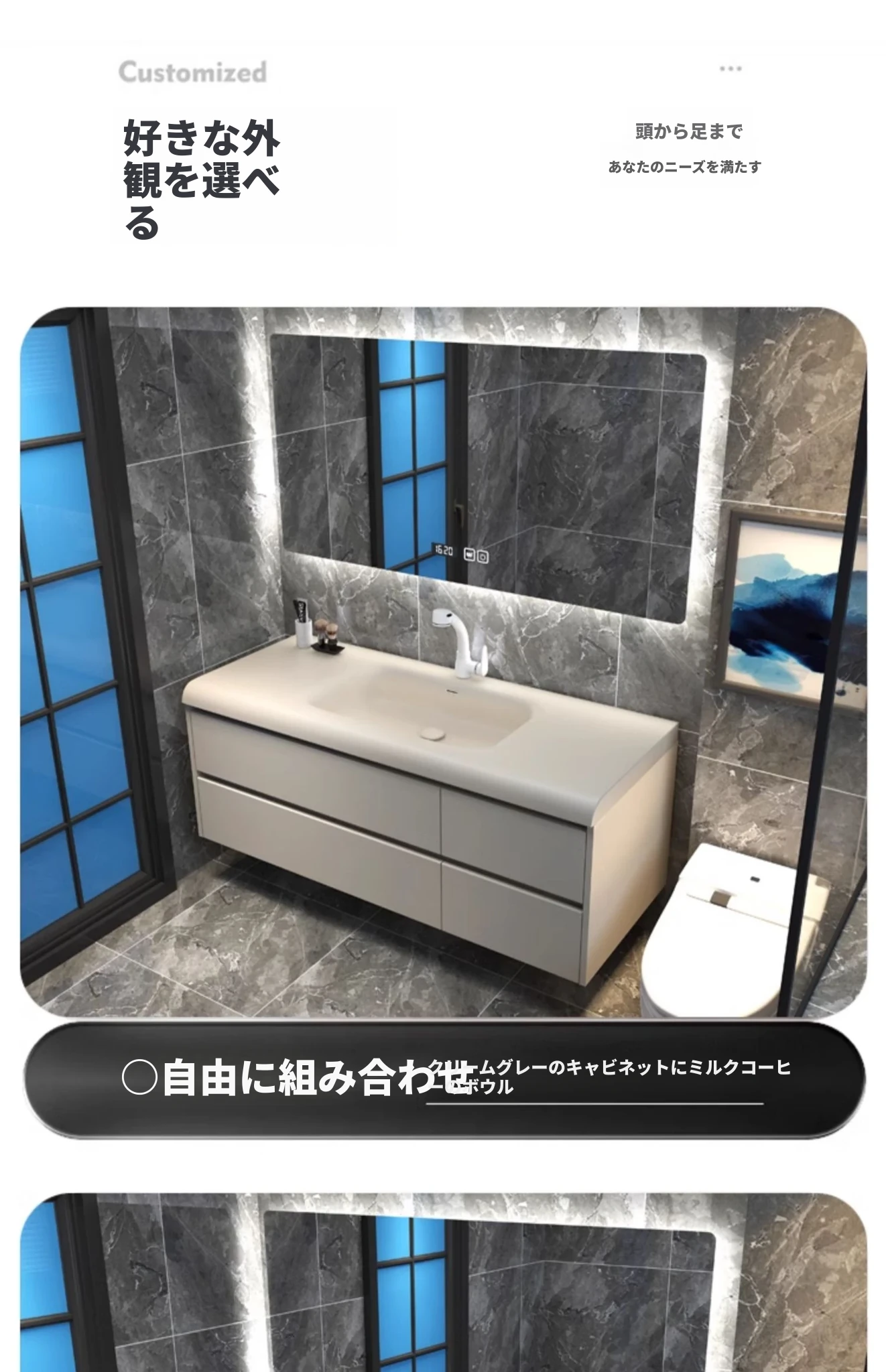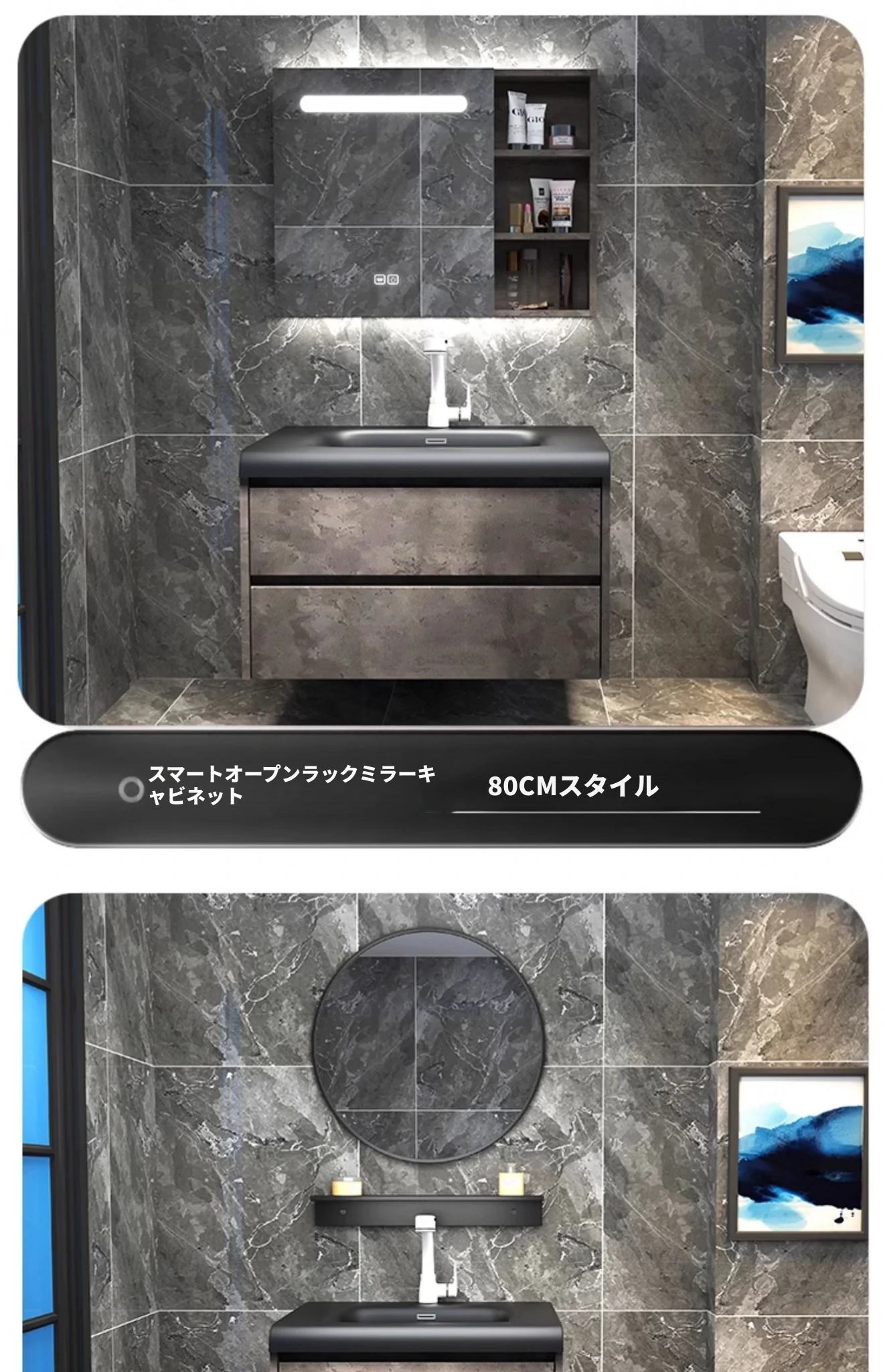 80cm一体盆+[スマートガラス扉鏡キャビネット] 80cm一体盆+[スマートガラス扉鏡キャビネット]