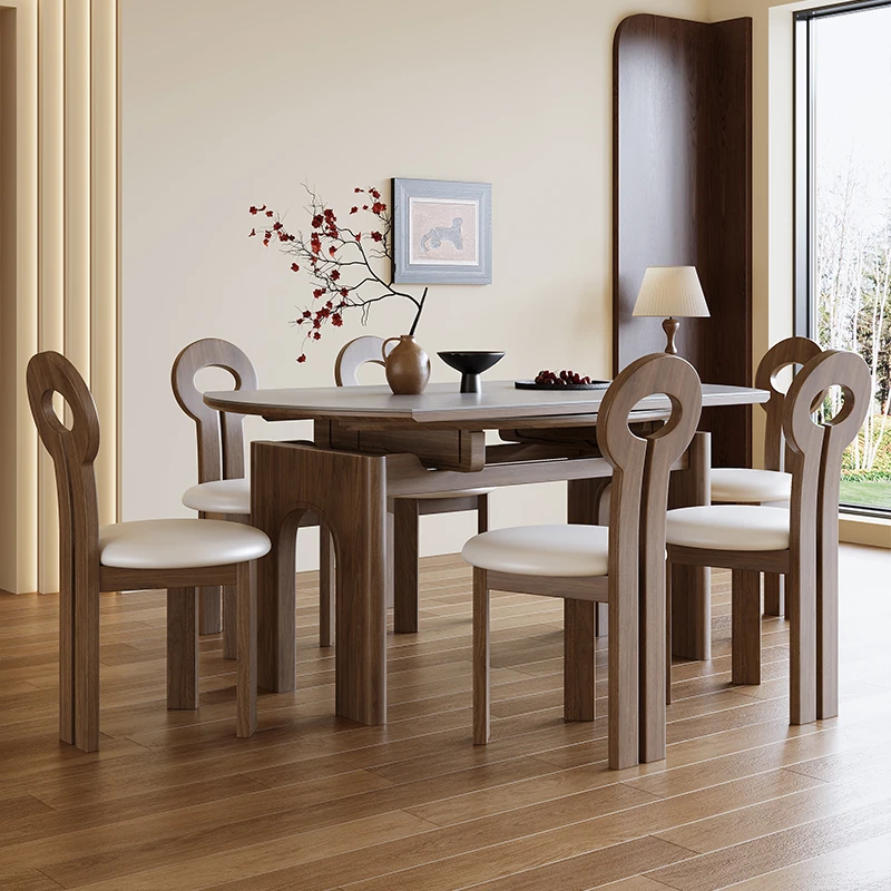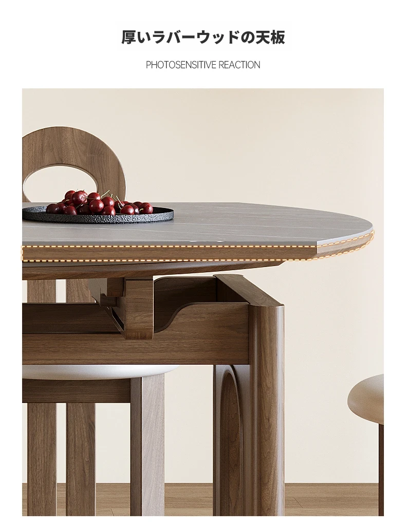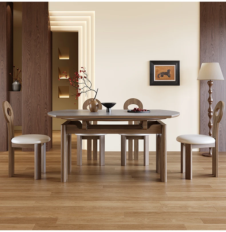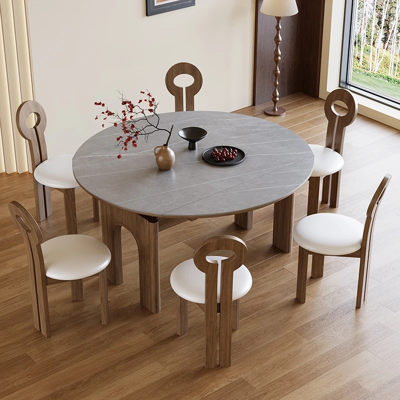 十虎の中華風折りたたみ無垢材ダイニングテーブルセット | 岩板仕上げ | 2024年新作 | 家庭用伸縮可能な四角・丸型テーブル | 小戸型に最適 | スタイリッシュで機能的!