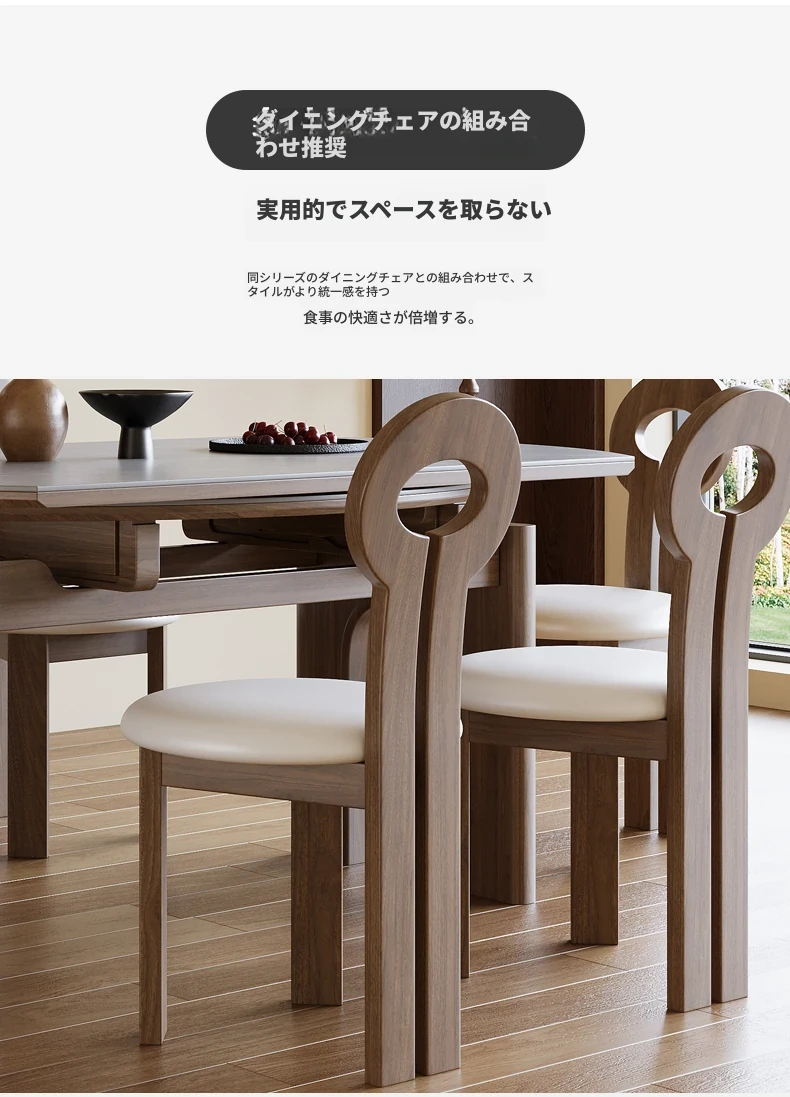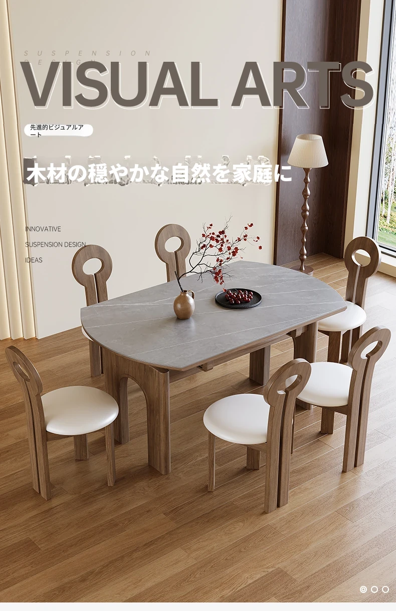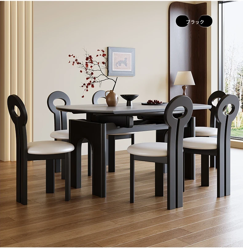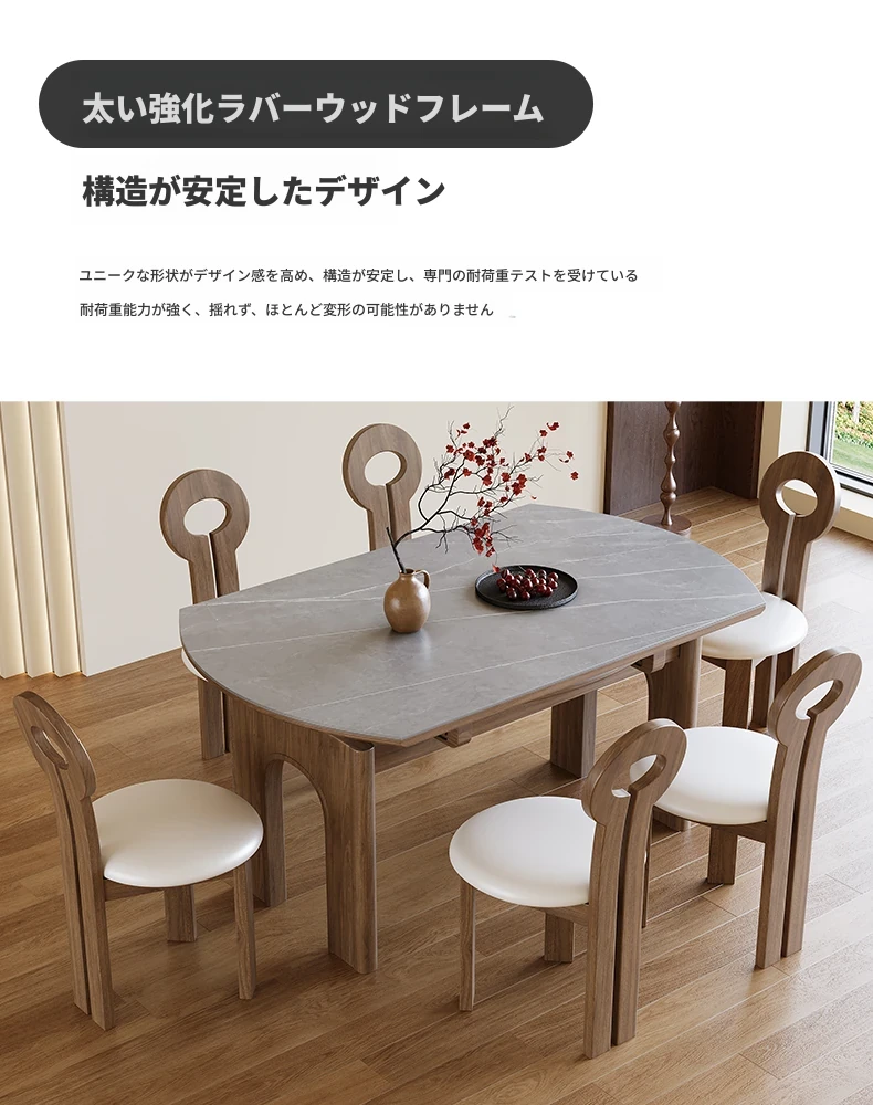 【プレミアム版】岩板伸縮ダイニングテーブル+無垢材のリンゴ椅子*6【プレミアム版】岩板伸縮ダイニングテーブル+無垢材のリンゴ椅子*6