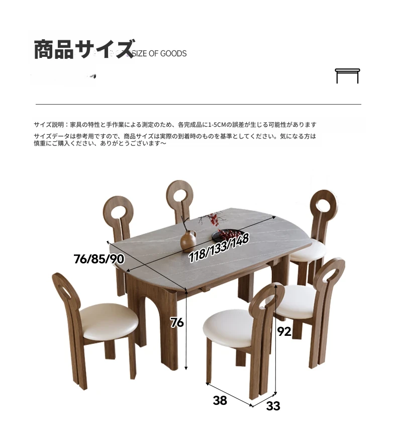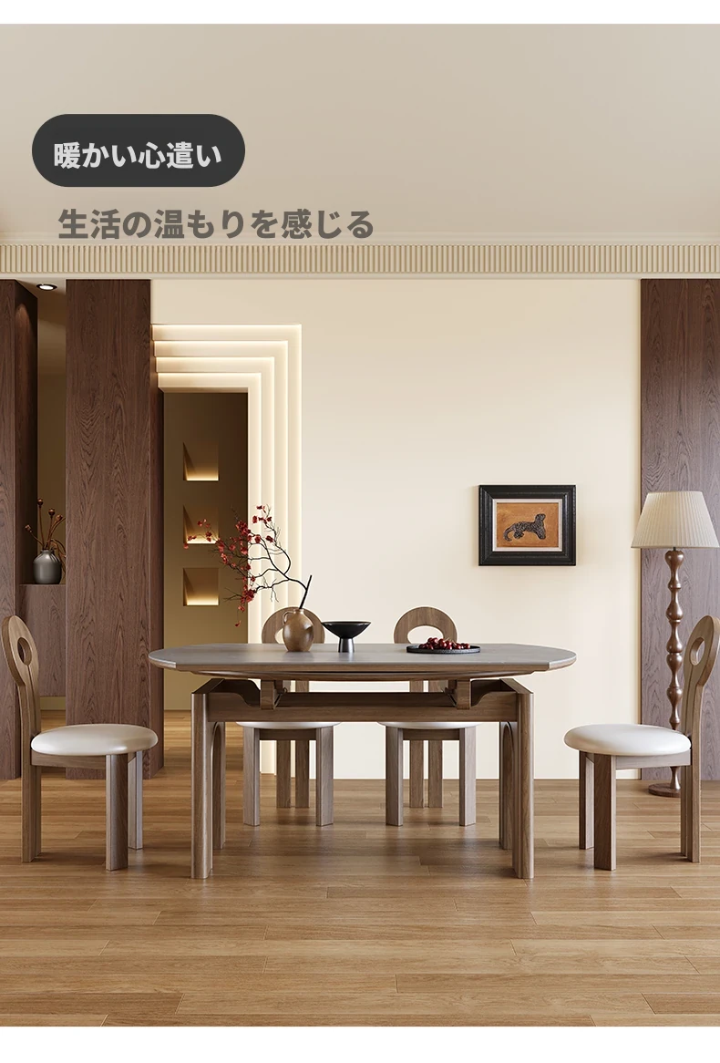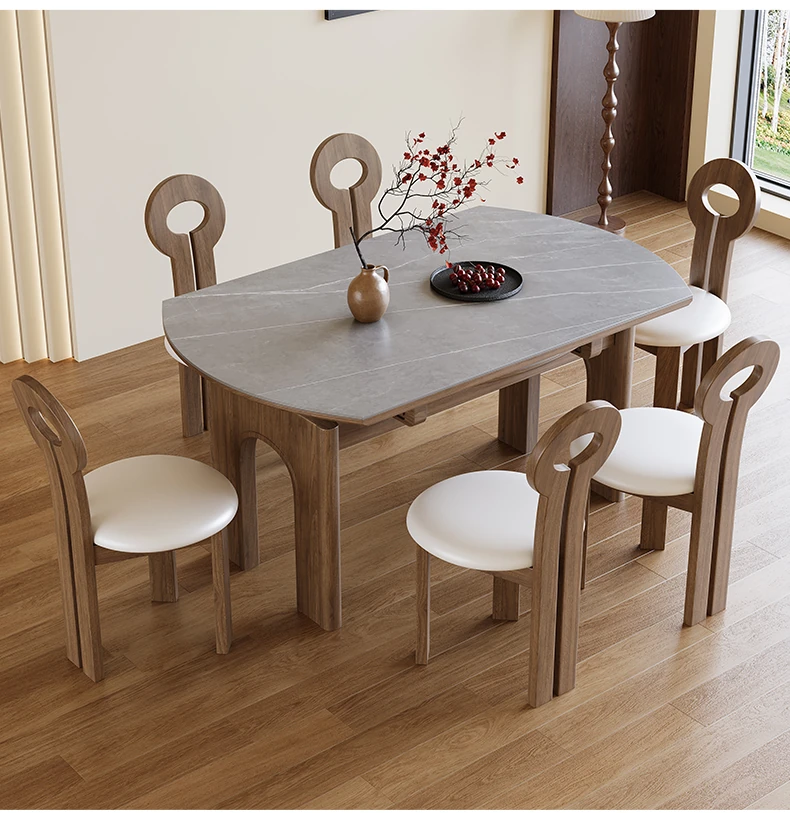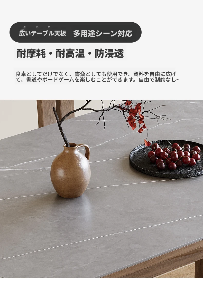 【プレミアム版】岩板伸縮ダイニングテーブル+無垢材のリンゴ椅子*6【プレミアム版】岩板伸縮ダイニングテーブル+無垢材のリンゴ椅子*6