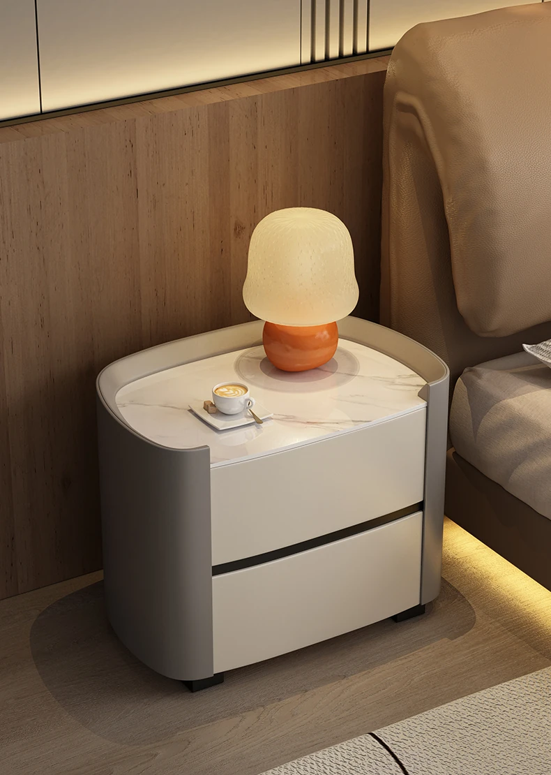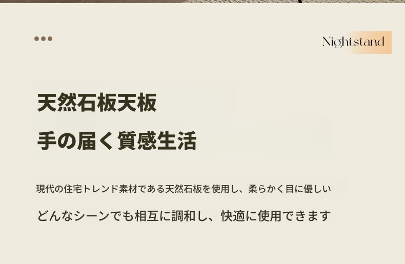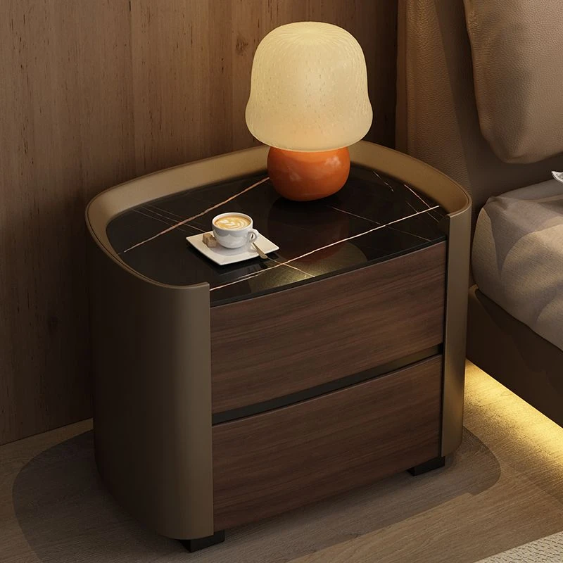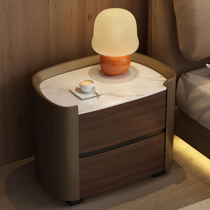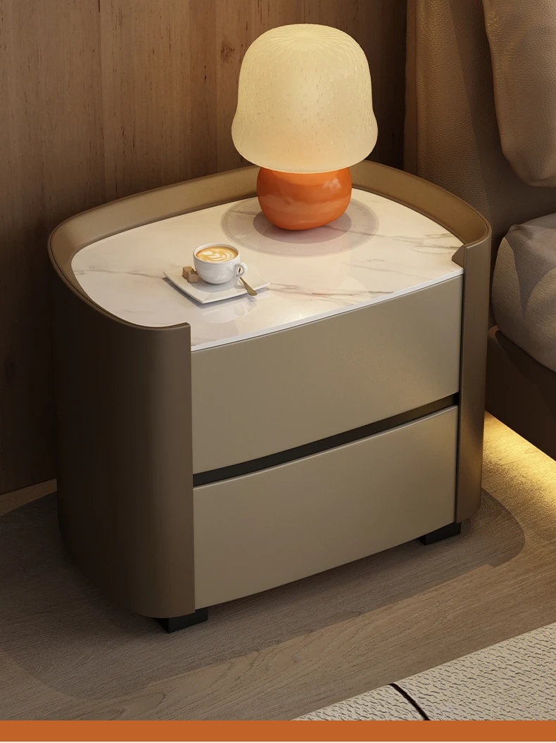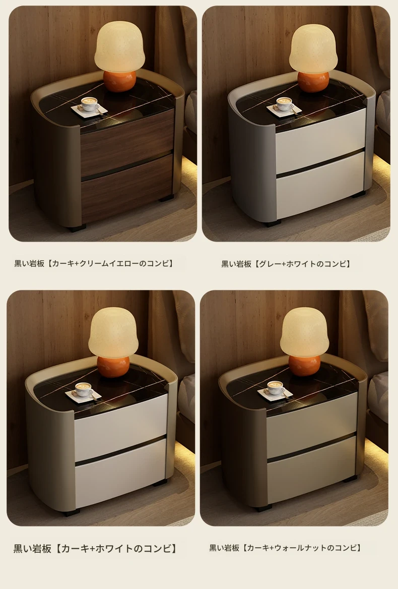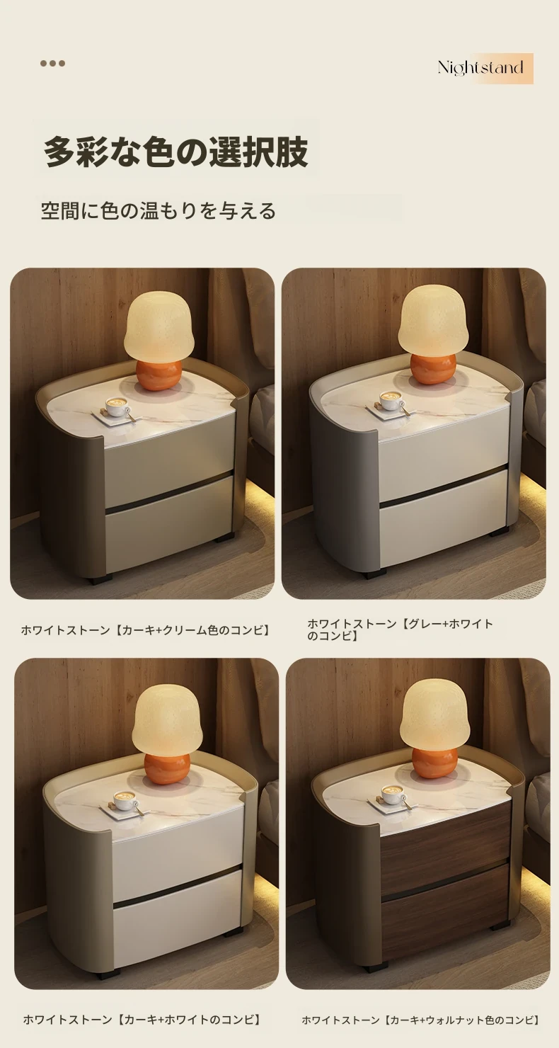 玉菲免安装モダンシンプル高級感漂う無垢材・ストーン調収納キャビネット ベッドサイドテーブル 小型イタリアンスタイル